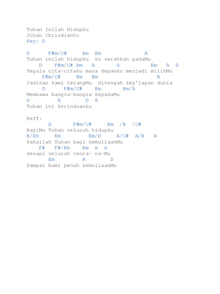 Bm/f# em am d jadikan kami terangmu ditengah keg'lapan. Melisha u0026 melitha sidabutar mp3 duration 4:00 size 9.16. Tuhan inilah hidupku by marina runtuwene. Tuhan, inilah proposal hidupku book. Tuhan inilah hidupku pengarang :